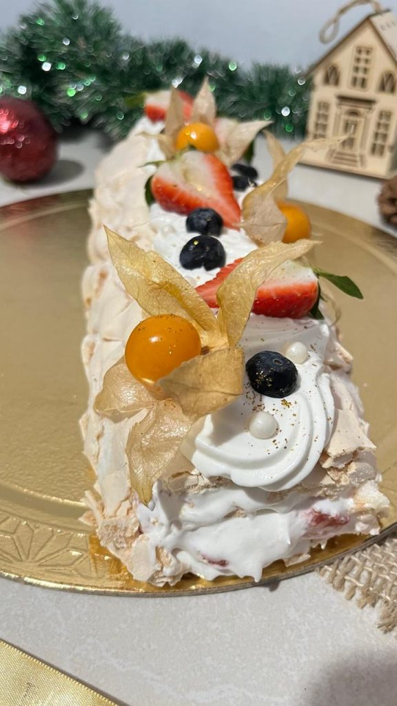 Rocambole pavlova com geleia de morango